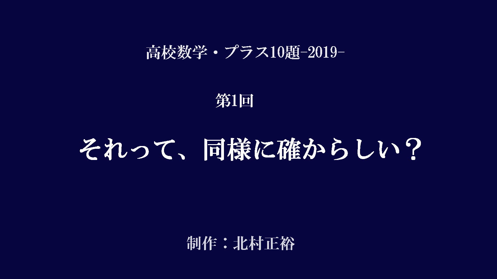 ●学習支援動画「高校数学プラス10題-2019-」シリーズ10本をYouTubeで公開しています。