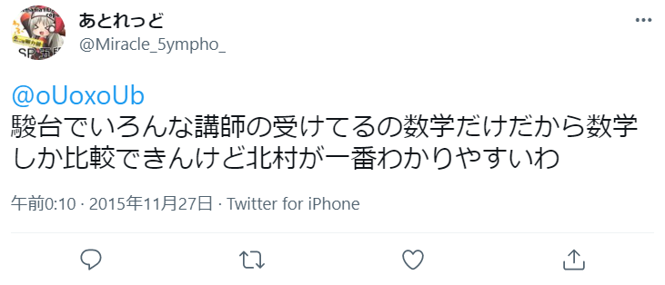 予備校で30年以上、大学受験生に数学を教えてきましたが、集団授業、講義だけでは、ひとりひとりのペース、特徴に合わせた指導には限界があり、集団授業で難しいひとりひとりのペース、特徴に合わせた個別指導が重要だと考えています。そこで、予備校での講義の仕事と並行して、家庭教師の活動で、個別指導を実践し、教育活動を充実させたいと思っています。